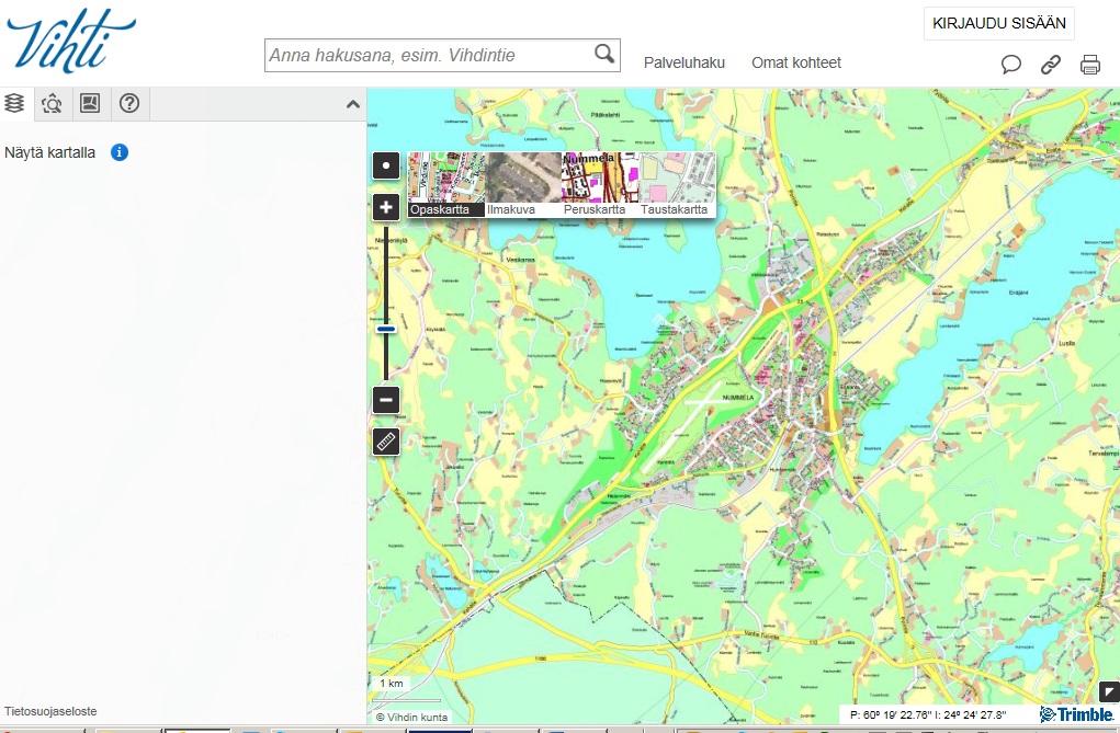 Vihdin kunnan uuden karttapalvelun käyttöönotto on aloitettu.