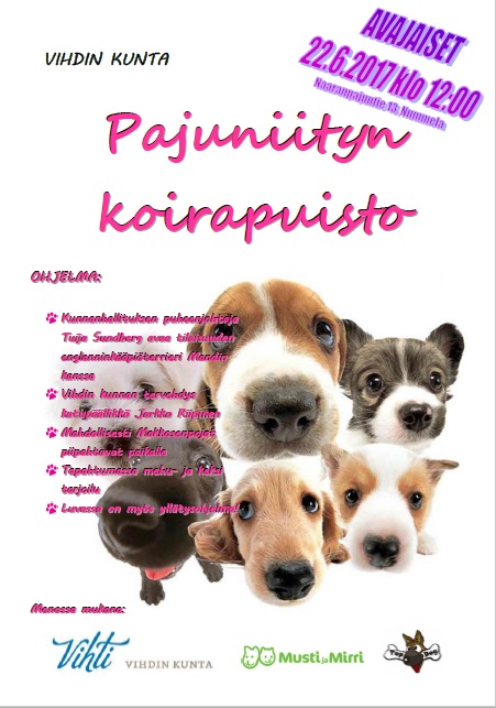 Nummelan Naaranpajuntien koirapuisto otetaan käyttöön torstaina 22.6. , jolloin puistossa järjestetään avajaistapahtuma klo 12.00 – 13.30. Tilaisuuden avaa kunnanhallituksen puheenjohtaja Tuija Sundberg englanninkääpiöterrieri Mandin kanssa. Ohjelmassa on myös kunnan tervehdys sekä yllätysohjelmanumero puiston nelijalkaisille käyttäjille.