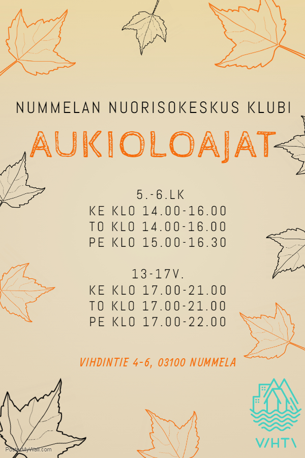 Nummelan nuorisokeskus Klubin syyskauden aukioloajat