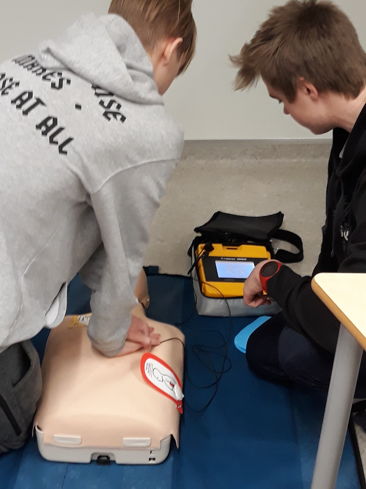 Vihdin lukiolla elvytykseen ja sydänterveyteen on tutustuttu tällä viikolla osana TE4-kurssin, nuoren fyysinen ja psyykkinen terveys, opetusta. Tuntumaa laitteisiin haettiin käytännön harjoituksissa, jotka sujuivat nuorilta sukkelasti.  Opettajan Inga-Maria Vaaran opastuksella ja aihepiirin osaamisella iskurien käyttökokeilu sujahti luontevasti osaksi normaalia opetusta: