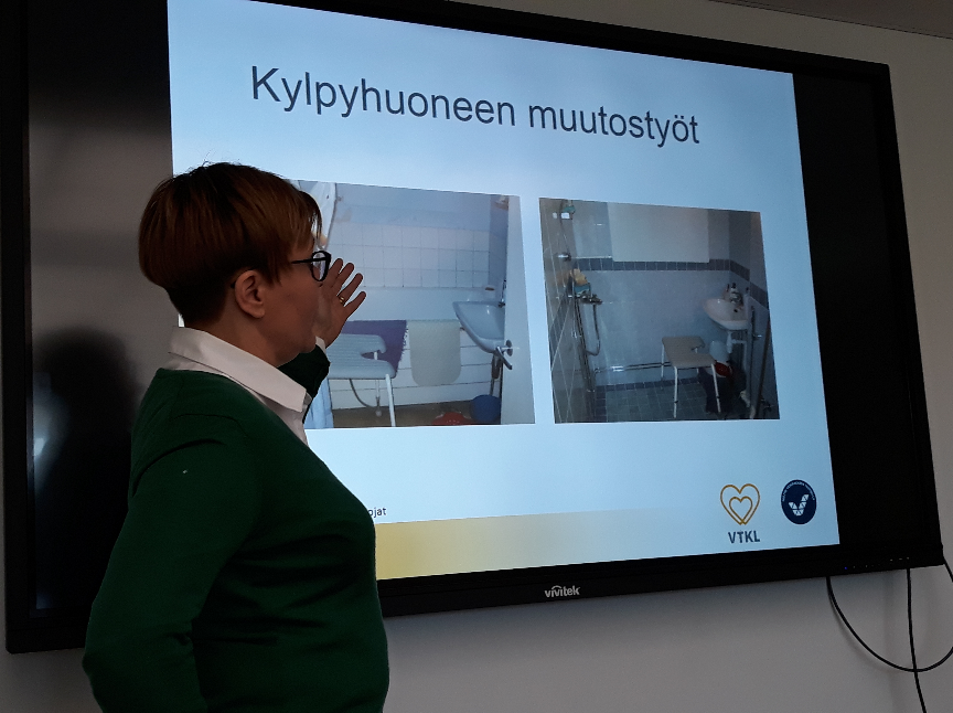 Leino esitteli vanhusneuvostolle myös Asumisen rahoituskeskuksen (ARA) korjausavustusten hakemisen periaatteita kotona asumista tukeviin remontteihin, kuten esimerkiksi sisäänkäynnin tai ulkorappujen korvaamiseen luiskalla tai pesutilojen ammeiden muuttamiseen suihkuiksi.