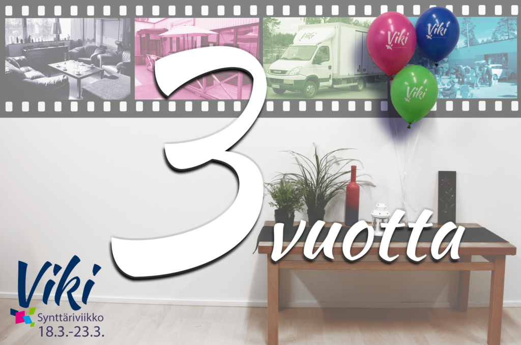 Juhlimme 3-vuotissyntymäpäiviä koko ensi viikon 18.‒23.3.2019. Syntymäpäiviä juhlistetaan pitkin viikkoa monin alennuksin ja tempauksin.