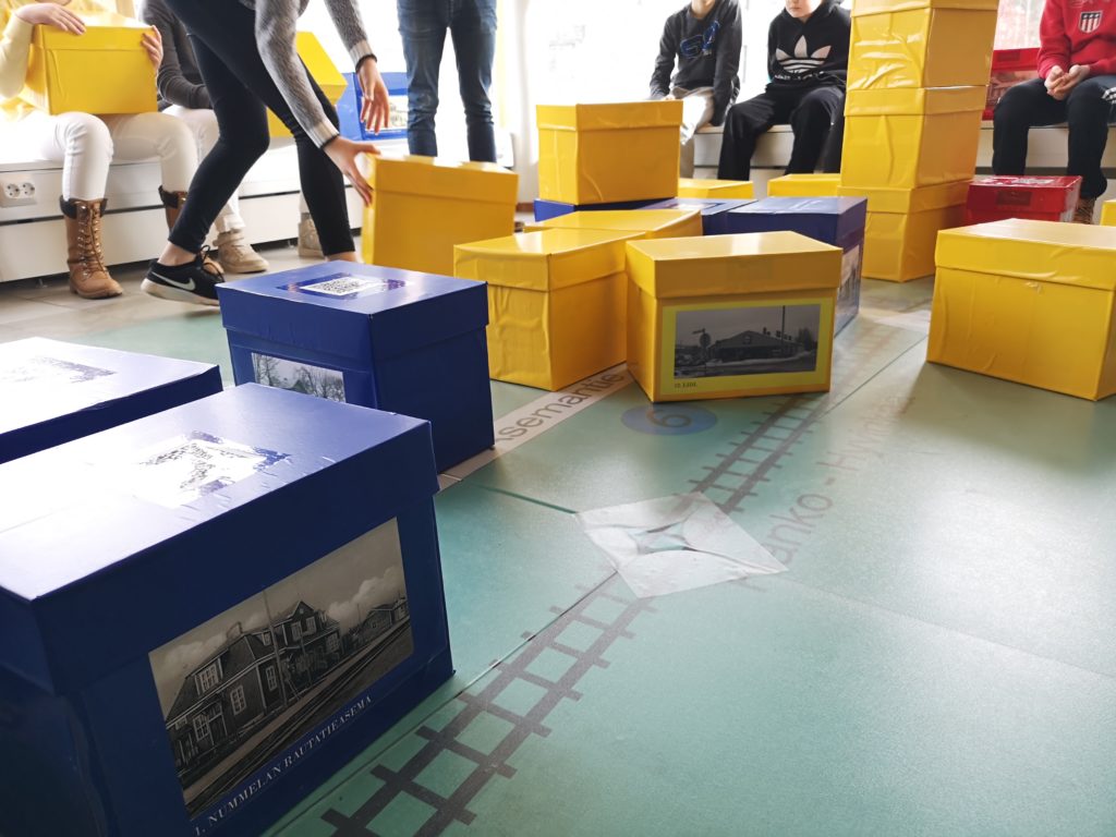 Tilaisuudessa oppilaat saivat ensin tutustua Nummelan taajaman rakentumisen historiaan havainnollisen kartta-/laatikkoharjoituksen avulla ja museoamanuenssin johdolla. PopUp –tilassa, Vihdin museon näyttelyn puolella, on lattiassa Nummelan keskusta-alueen kartta, jonka päälle sijoitetaan värillisiä laatikoita. Nämä laatikot edustavat yksittäisiä Nummelan taajaman rakennuskohteita, ja laatikoiden väritys (punainen/sininen/keltainen) kertoo kunkin rakennuksen rakennusaikakauden.