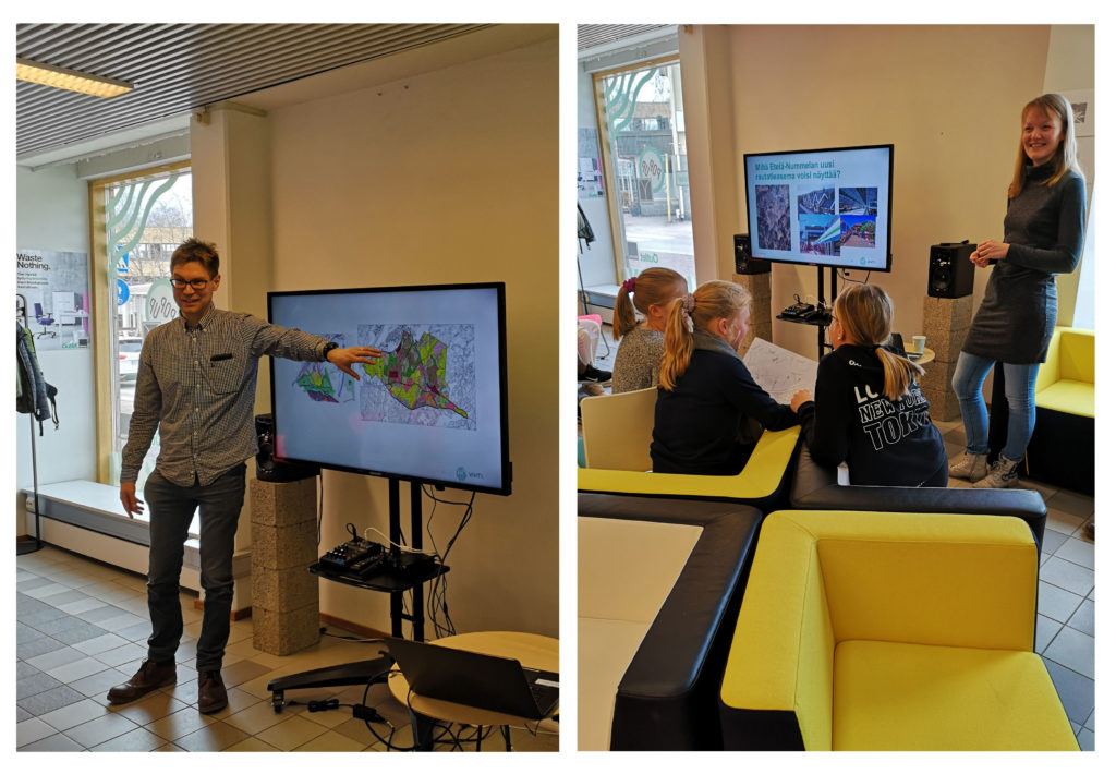 Vihdin kunnan kaavasuunnittelijat järjestivät kaavoitusaiheisen esittelytilaisuuden Kuoppanummen koulukeskuksen oppilaille torstaina 28.3.2019. Oppilaat olivat 5- ja 7-luokkalaisia. Tilaisuudessa hyödynnettiin kunnan käytössä olevaa, ns. Auran talon, PopUp –tilaa osoitteessa Asemantie 1, Nummelassa.