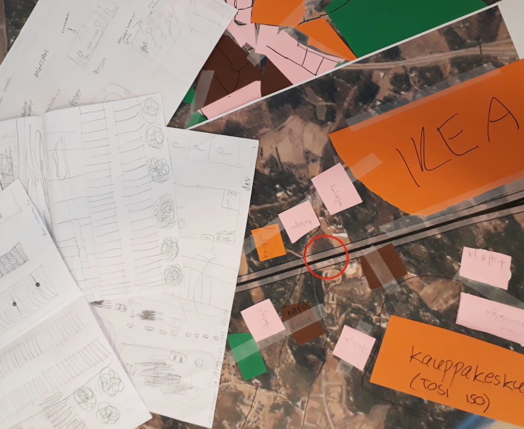 Yläkoululaiset saivat ryhmätöiden pohjaksi A0-kokoisen ilmakuvakartan Etelä-Nummelan alueelta, johon oli osoitettu myös tuleva ESA-radan linjaus ja Vihdin asemapaikan alustava sijainti. Ryhmissä pohdittiin ja suunniteltiin alueen rakentumista sekä asemanseudulla että yhdistettynä nykyiseen Nummelan taajamaan. Töistä löytyi erinomaista suunnitelmallista otetta, sekoittunutta maankäyttöä ja eri toimintojen perusteltuja sijoittelua.