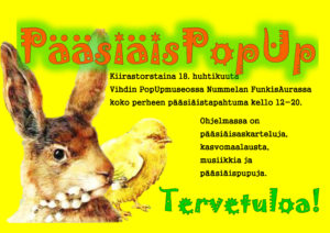 Pääsiäismunat, noidat, narsissit… mitä kaikkea pääsiäisen tunnelmaan kuuluukaan! Kiirastorstaina 18. huhtikuuta järjestetään Vihdin PopUp-museossa Nummelan Funkis-Aurassa (Asemantie 1) koko perheen pääsiäistapahtuma kello 12-20.