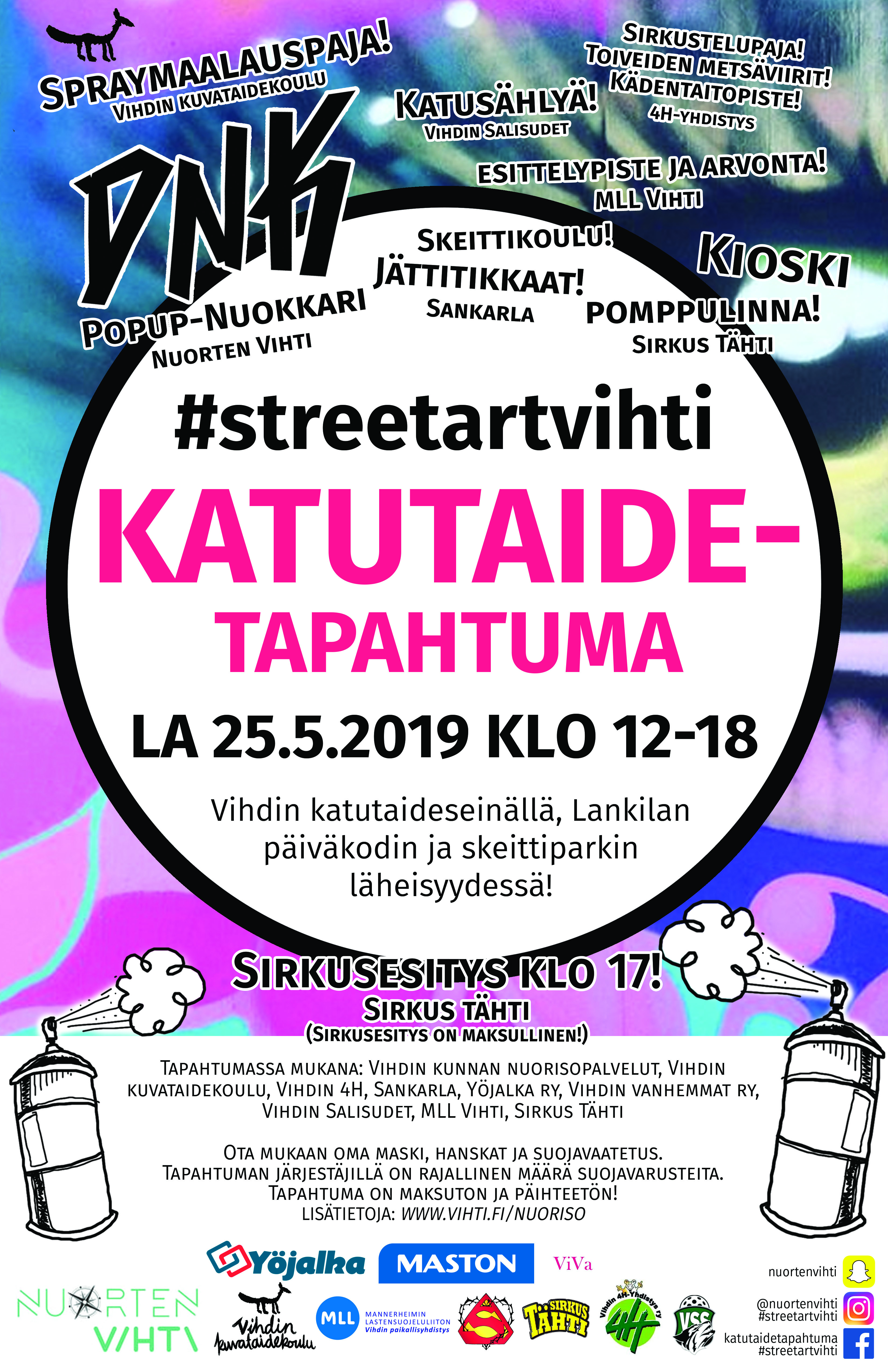 Tapahtumassa mukana: Vihdin kunnan nuorisopalvelut, Vihdin kuvataidekoulu, Vihdin 4H, Sankarla, Yöjalka ry, Vihdin vanhemmat ry, Vihdin Salisudet, MLL Vihti, Sirkus Tähti