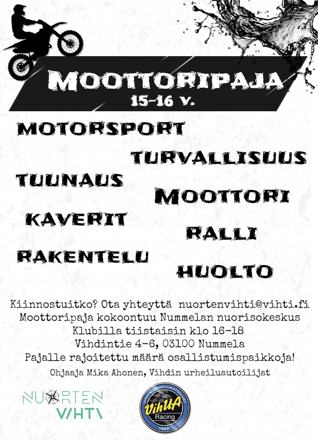 Ilmoittaudu mukaan moottoripajalle lähettämällä sähköpostia nuortenvihti@vihti.fi