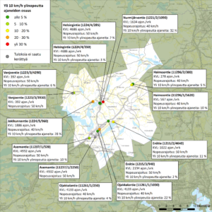 Kuva 2. Uudenmaan ELY-keskuksen siirrettävät nopeusnäyttötaulut Vihdin alueella vuonna 2019. (Klikkaa kuva suuremmaksi)