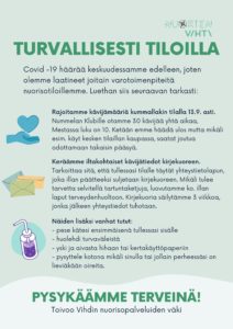 Nuorisotilojen avatessa ovensa noudatamme edelleen ajankohtaisia Covid-19-suosituksia, joiden pohjalta laadimme tarkempia ohjeistuksia tilailtoihin. Alta näet nuorisotilojen poikkeuskäytännot, jotka ovat voimassa 13.9. asti. Ilmoitamme muutoksista nettisivuilla ja somekanavilla.