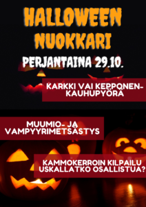 Halloween nuokkari perjantaina 29.10. Mestassa ja Nlan nuokkarilla