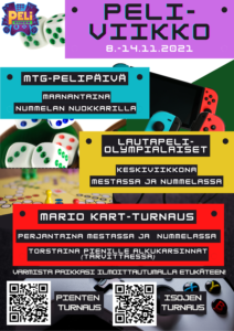 Keskiviikkona 10.11. Lautapeliolympialaiset Nummelan nuokkarilla ja Kirkonkylän Mestassa