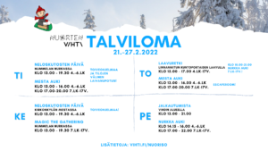 Vihdin nuorisopalvelut järjestää talvilomaviikolle ohjelmaa nuorisotiloilla ja tilojen lähiympäristöissä. Ohjelmassa on lomaviikoilta tuttuja toimintaa Nummelassa ja Kirkonkylällä.