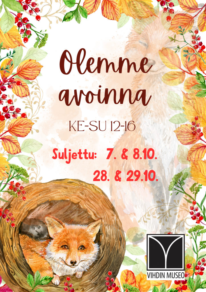 Museo on lokakuussa auki ke-su klo 12-16 paitsi la-su 7.-8.10. ja 28.-29.10.
