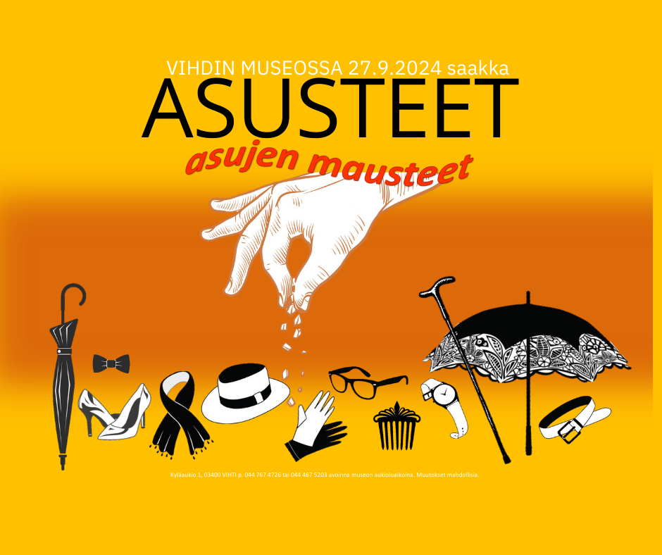 Näyttelyssä sukelletaan asusteiden värikkääseen maailmaan ja tutustutaan vähän erikoisempiinkin tarinoihin nykypäivän ihmiselle tuttujen vaatekappaleiden takana. Millainen rooli asusteilla on sinun elämässäsi, arjessa ja juhlassa? Onko sinulla omia lempiasusteita? Entäpä inhokkeja?…