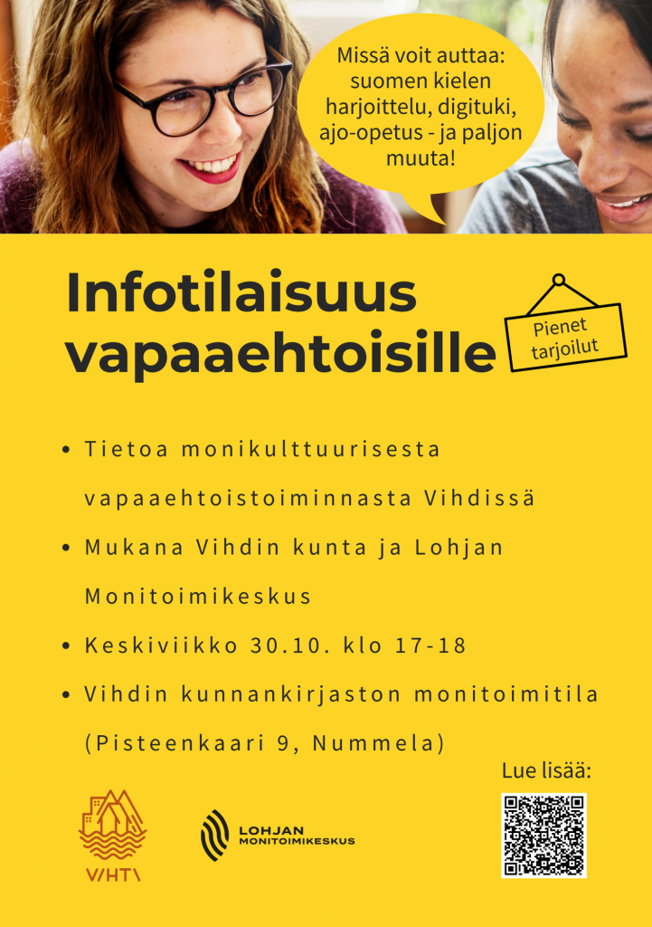 Tervetuloa infotilaisuuteen erilaisista monikulttuurisen vapaaehtoistoiminnan mahdollisuuksista Vihdin alueella!