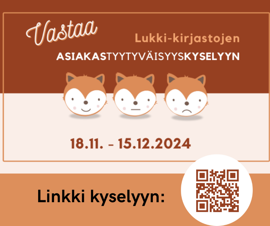 Vastaa Lukki-kirjastojen asiakastyytyväisyyskyselyyn! Vastausaikaa on 15.12.2024 saakka.