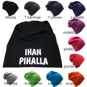 Pihatapahtuman sijaan myymme trikoopipoja varustettuna heijastavalla IHAN PIHALLA tekstillä kappalehintaan 19 e.