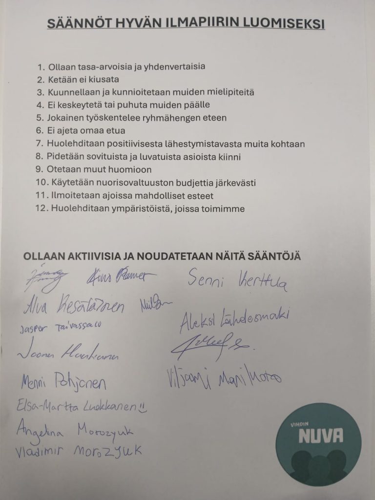 Nuorisovaltuuston säännöt hyvän ilmapiirin luomiseksi 2025